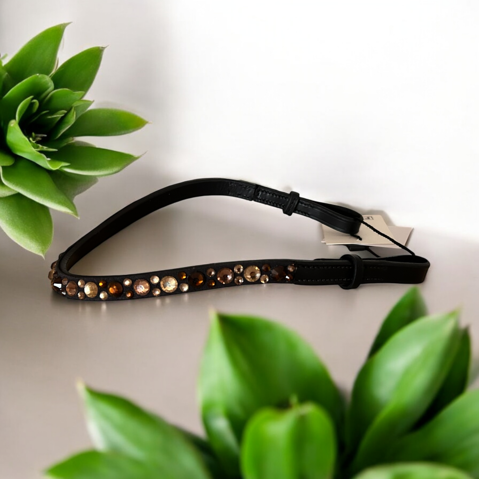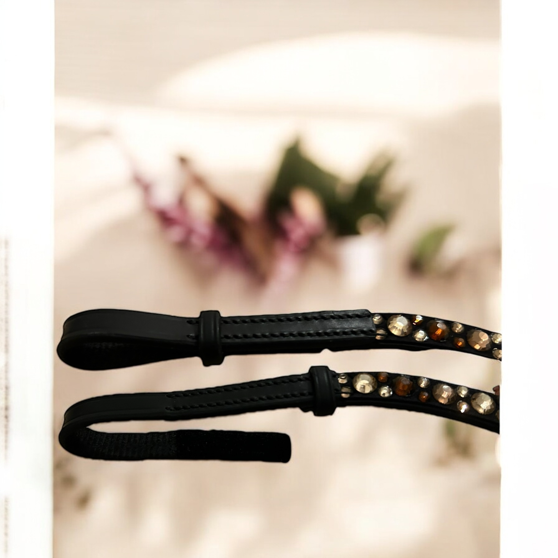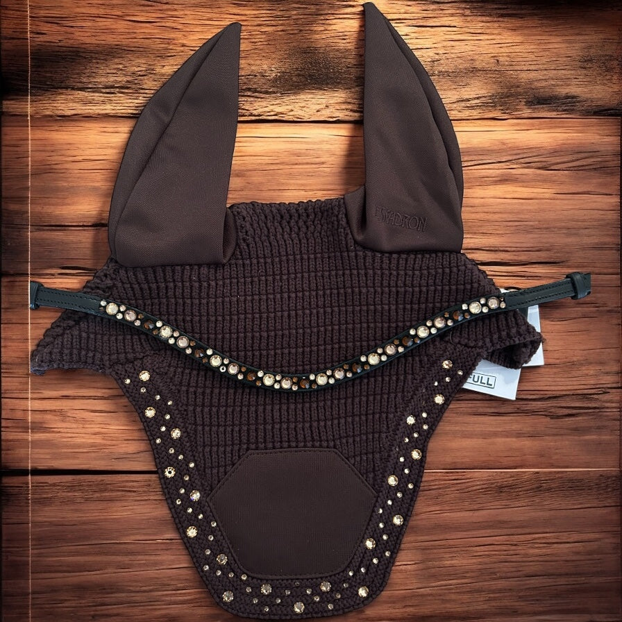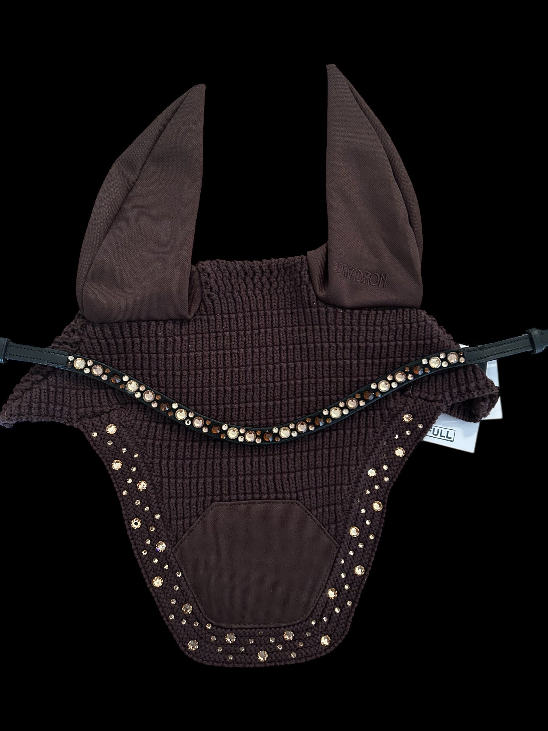 Verleihen Sie Ihrem Pferd einen Hauch von Eleganz und Luxus mit unserem exklusiven Set „Brown Diamond“. Die hochwertig verarbeiteten, braunen Fliegenohren sind mit funkelnden light Topaz Kristallen verziert und setzen stilvolle Akzente – perfekt für den besonderen Auftritt auf dem Turnier oder beim Ausritt.