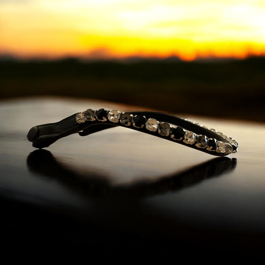 Der „Crystal Glow Stirnriemen“ vereint exklusive Optik mit maximaler Flexibilität. Die sorgfältig eingefassten Kristalle reflektieren das Licht und sorgen für einen edlen, strahlenden Akzent am Pferdekopf.