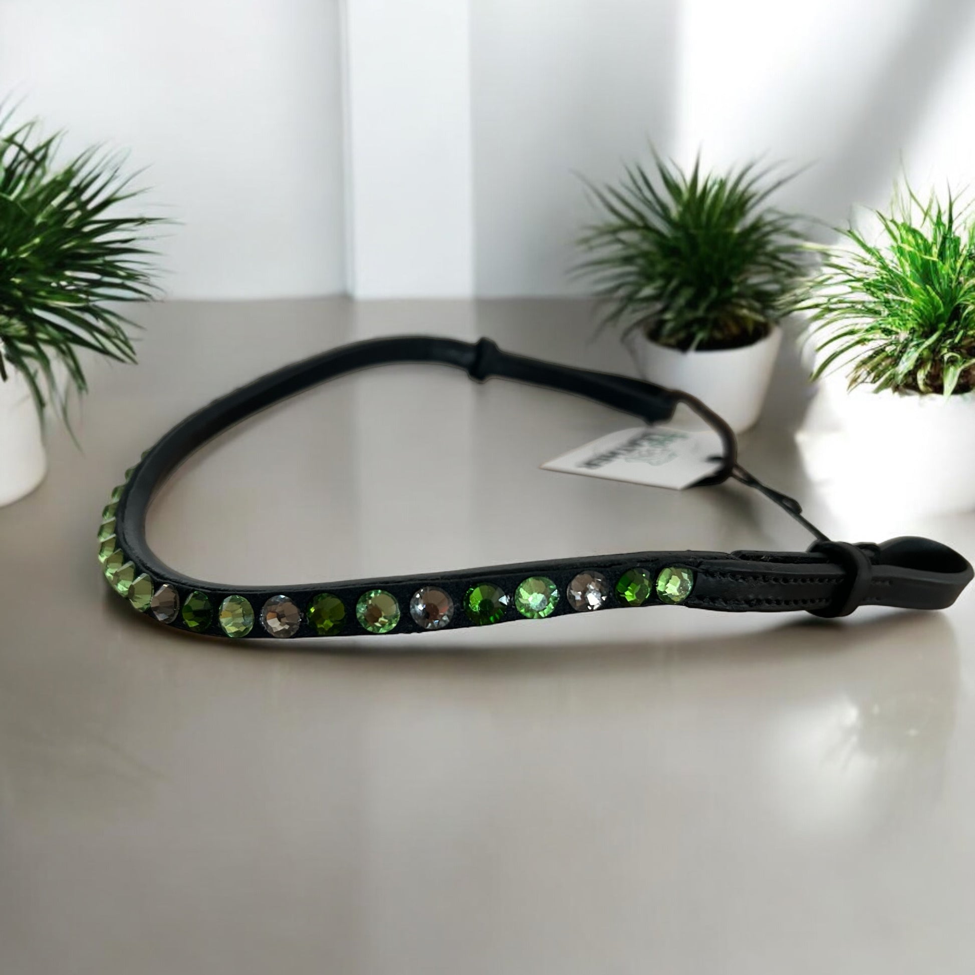 HOCHWERTIGER LEDER STIRNRIEMEN MIT GLITZER - Grün