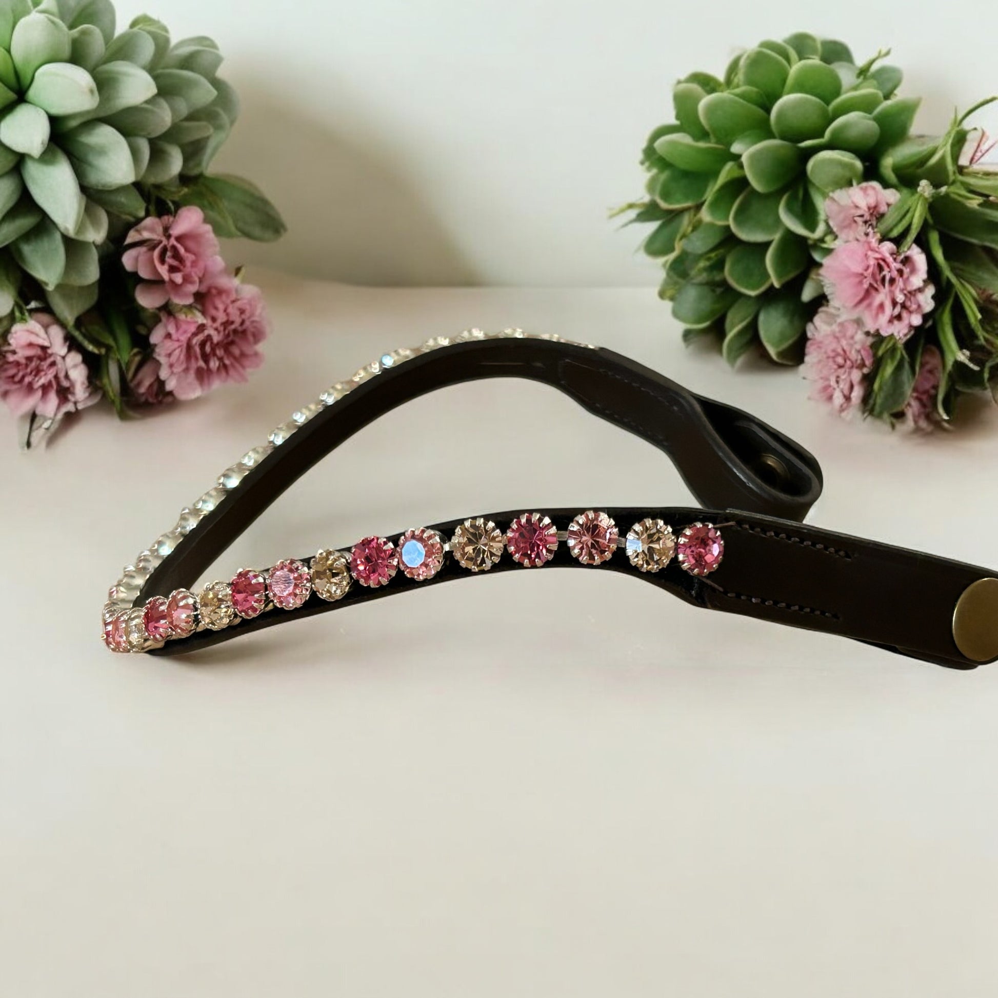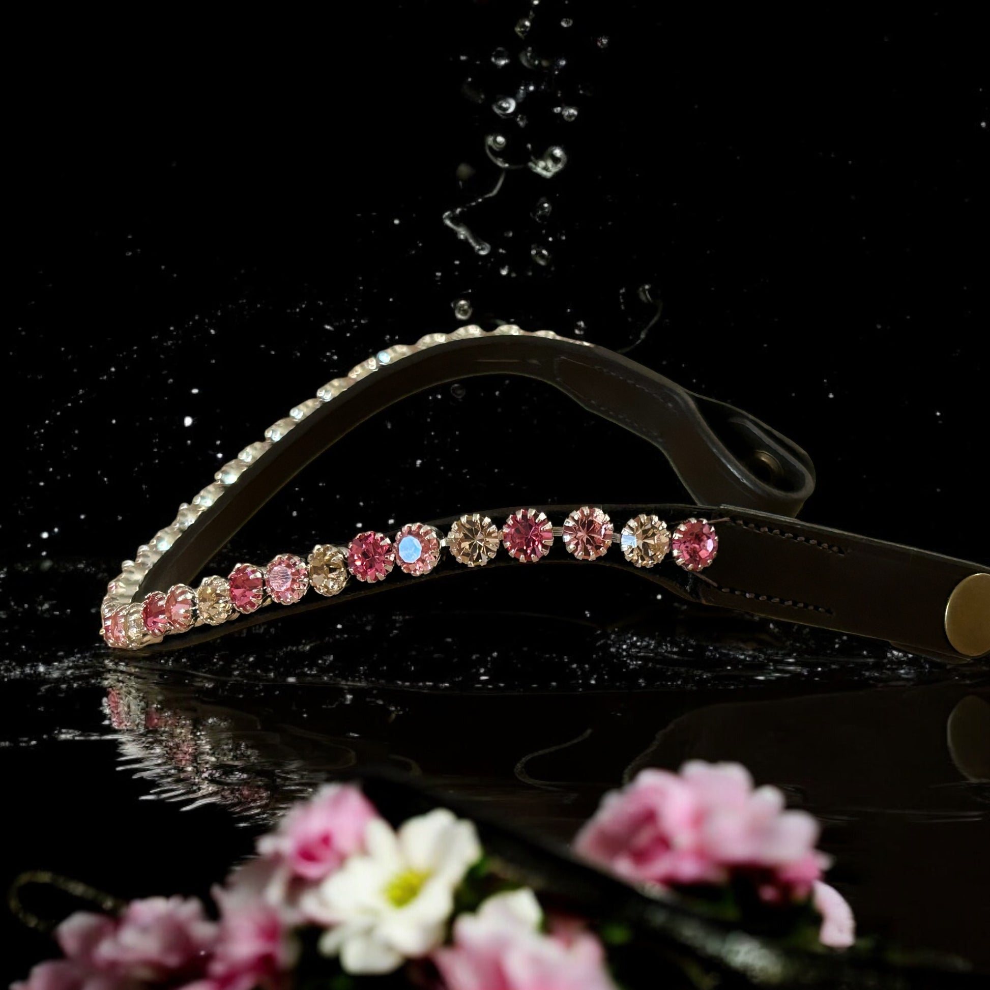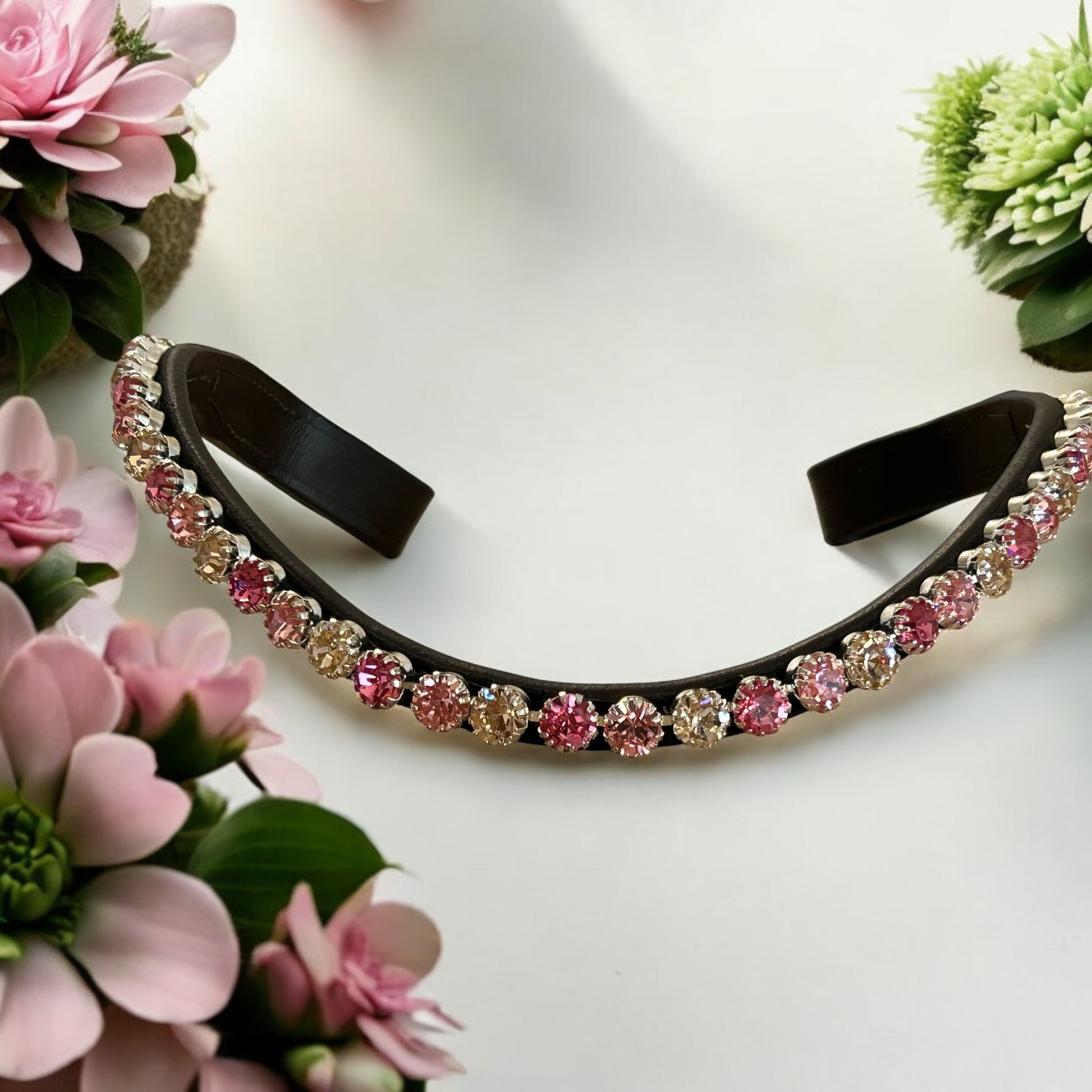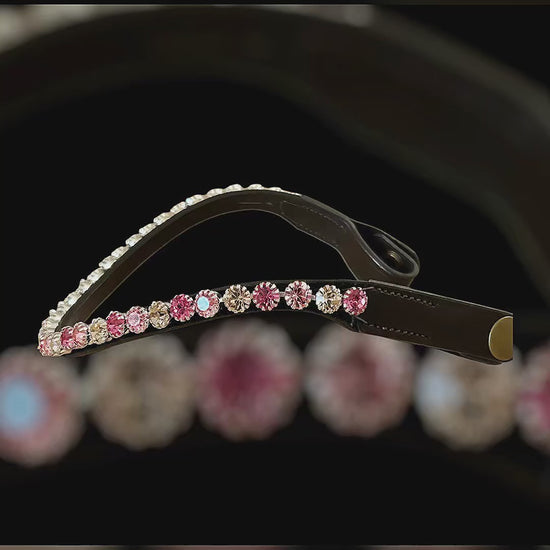 Dieser luxuriöse Stirnriemen präsentiert sich als wahres Schmuckstück für jeden Pferdeliebhaber. Der Stirnriemen verfügt über ein innovatives Schnellwechselsystem per „Knopfdruck“, welches das Wechseln des Designs mühelos und schnell ermöglicht. Die funkelnden Glitzersteine sind kunstvoll in den sanften Farben Light Rose, Vintage Rosé und einem zarten Rosé arrangiert. Diese harmonische Farbauswahl verleiht dem Stirnriemen einen eleganten und romantischen Touch, der in der Sonne strahlt und bei jeder Bewegung das Licht brillant reflektiert.