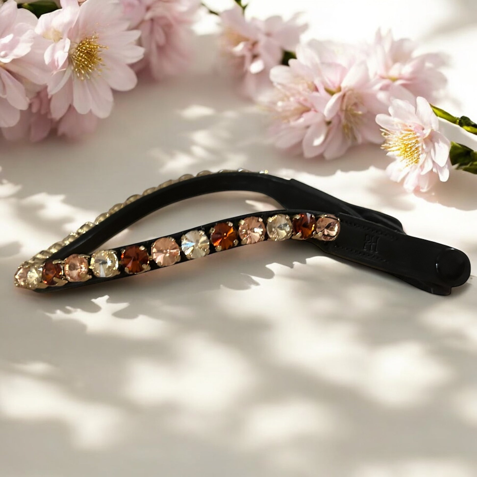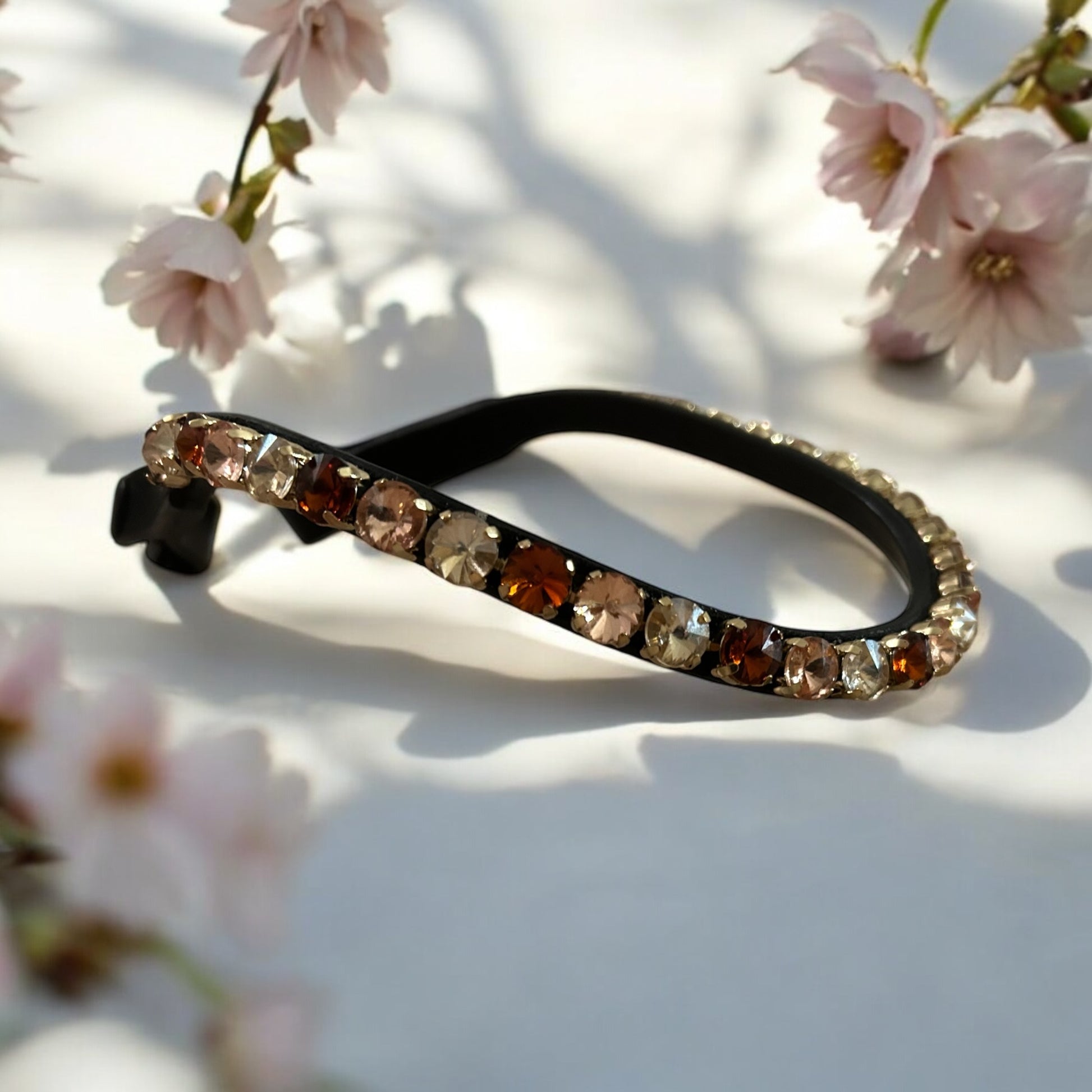 Der Stirnriemen „Sable Cream“ kombiniert sanfte Cremetöne mit warmem Braun für einen zeitlosen, harmonischen Look. Ob im Training oder auf dem Turnier – dieser hochwertige Stirnriemen setzt stilvolle Akzente.