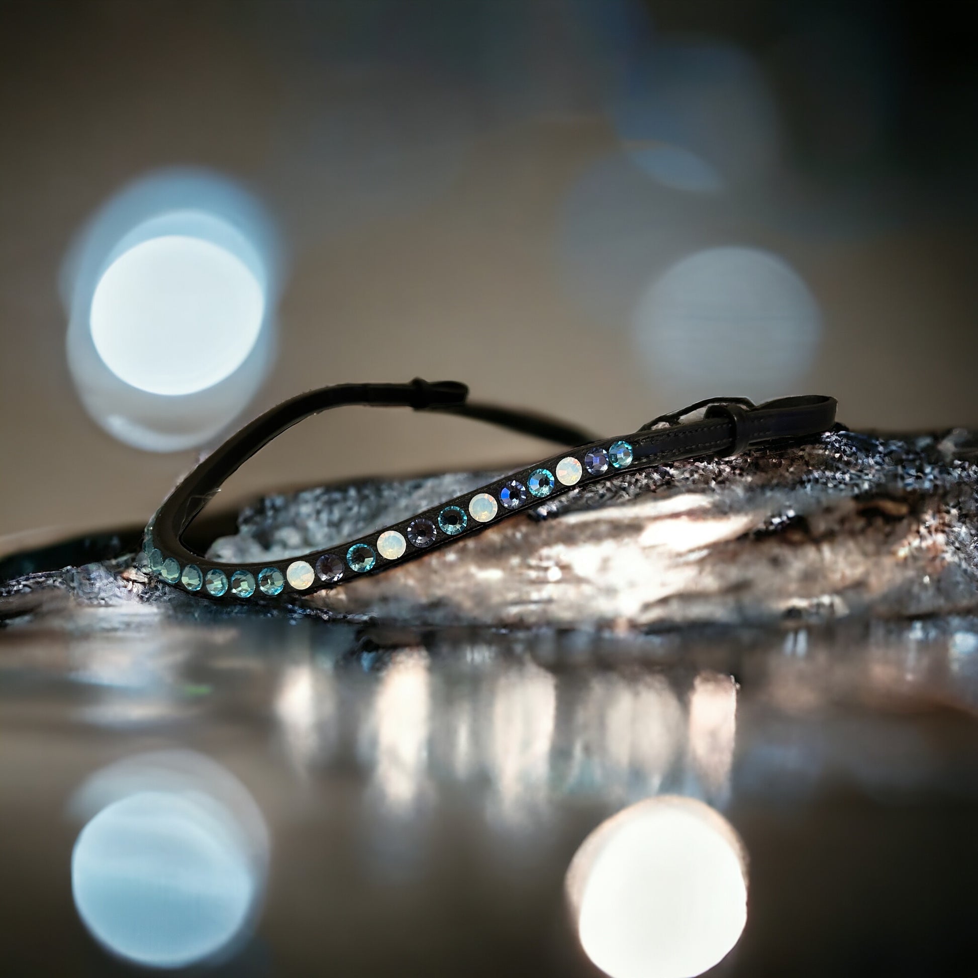 HOCHWERTIGER LEDER STIRNRIEMEN MIT GLITZER - Eleganter, hochwertiger Stirnriemen aus schwarzem Leder, veredelt mit funkelndem Glitzer Steinen für einen stilvollen Look beim Reiten