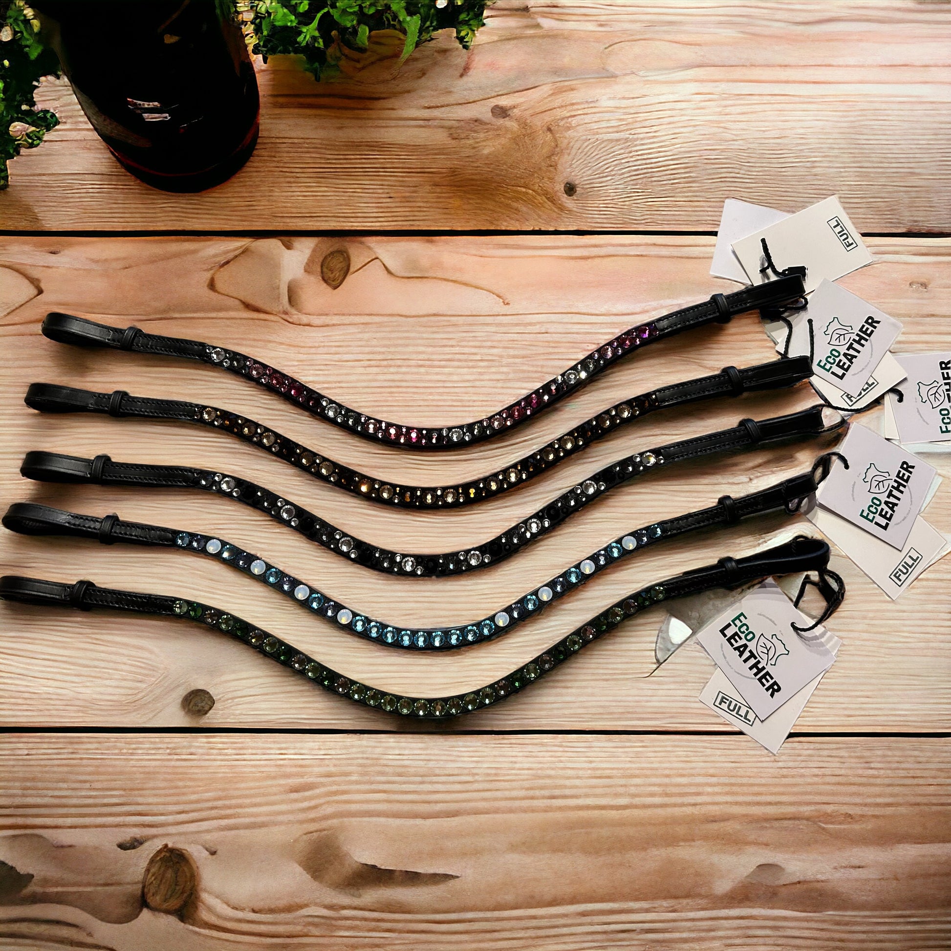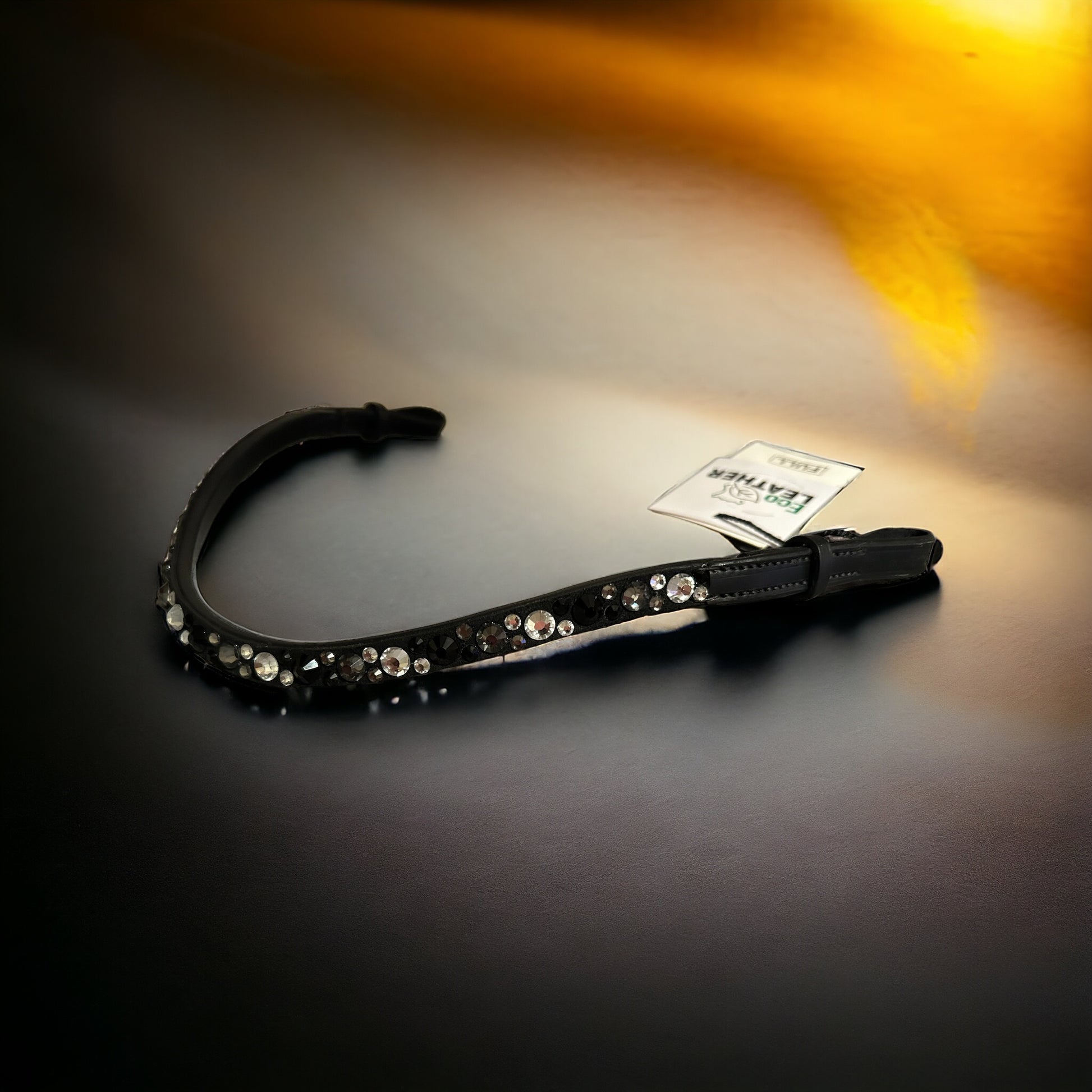 - Eleganter, hochwertiger Stirnriemen aus schwarzem Leder, veredelt mit funkelndem Glitzer Steinen für einen stilvollen Look beim Reiten